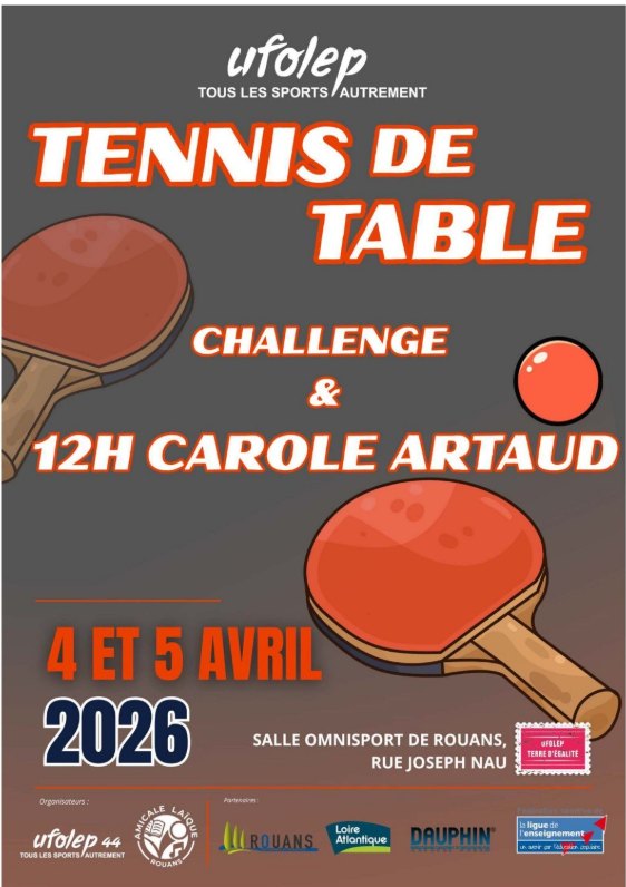 L’UFOLEP organise son épreuve originale : « 12 heures de l’UFOLEP – challenge Carole ARTAUD » de midi à minuit le dimanche 5 avril de 12 heures à 24 heures (dimanche de Pâques) à Rouans (44)